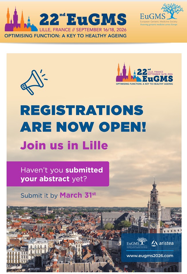 #EuGMS #EuGMS2026 #Geriatrics #HealthyAgeing #Lille #France #GeriatricMedicine #AbstractSubmission #Research #Innovation #EuGMSCommunity #Congress